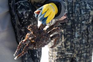 В ходе экскурсии мы доставим вас от берега на снегоходе к месту, где вы научитесь добывать крабов, используя специальные подледные ловушки, а завершит экскурсию дегустация сваренных в морской воде крабов.