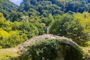 11:00 - 12:00. Мы направимся к мосту царицы Тамары, построенному в XIII веке над рекой Беслетка. Этот величественный мост, ставший символом любви и преданности, подарит нам возможность сделать незабываемые фотографии на фоне потрясающего пейзажа.