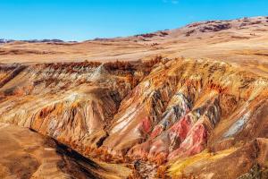 Фотостоп на фоне Чуйских Альп – ледниковых массивов Северо-Чуйского хребта. Экскурсия в Кызыл-Чин, известного как «Алтайский Марс» – это крутые каньоны, цвет которых по всей долине варьируется от бледно-желтого до насыщенно бордового. Выходы разноцветных глин на поверхность создают ощущение другой планеты, именно здесь у Вас получатся самые яркие алтайские фото.