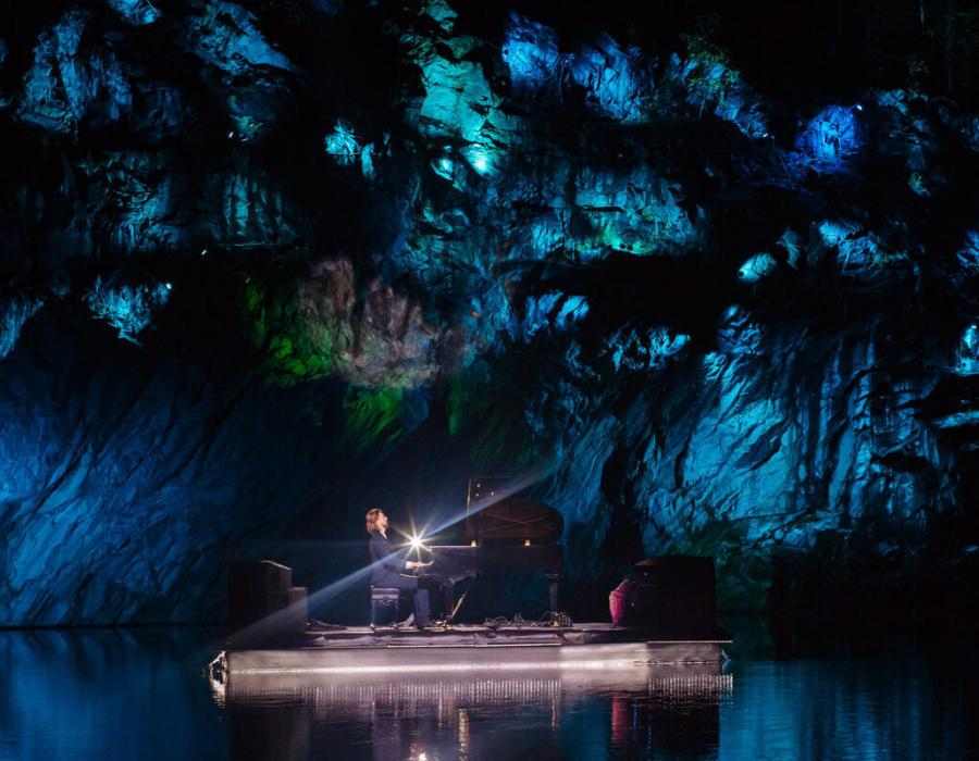 Прямо под открытым небом, в окружении обрывистых мраморных скал и дивных пейзажей, проходит ежегодный концерт фортепианной музыки. Плавучая концертная сцена установлена прямо на лазурном озере посреди Рускеальского Мраморного каньона, что создает невероятную акустику и сказочное звучание музыки. Звуки рояля под открытым небом на фоне грандиозных мраморных скал и волшебной карельской природы, незабываемые, фантастические впечатления и прекрасные фотографии, которыми могут похвастаться немногие!
