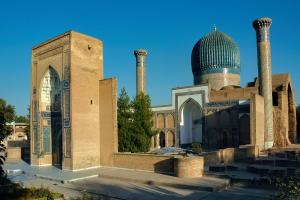 Экскурсия по Самарканду: самая известная площадь Центральной Азии – Регистан, окруженная тремя монументальными медресе – Шер-Дор, Тилля-Кари и медресе Улугбека; мавзолей Гур-Эмир – грандиозная династическая усыпальница Тамерлана, послужившая прототипом для мавзолеев Хумаюн в Дели и Тадж-Махал в Агре.